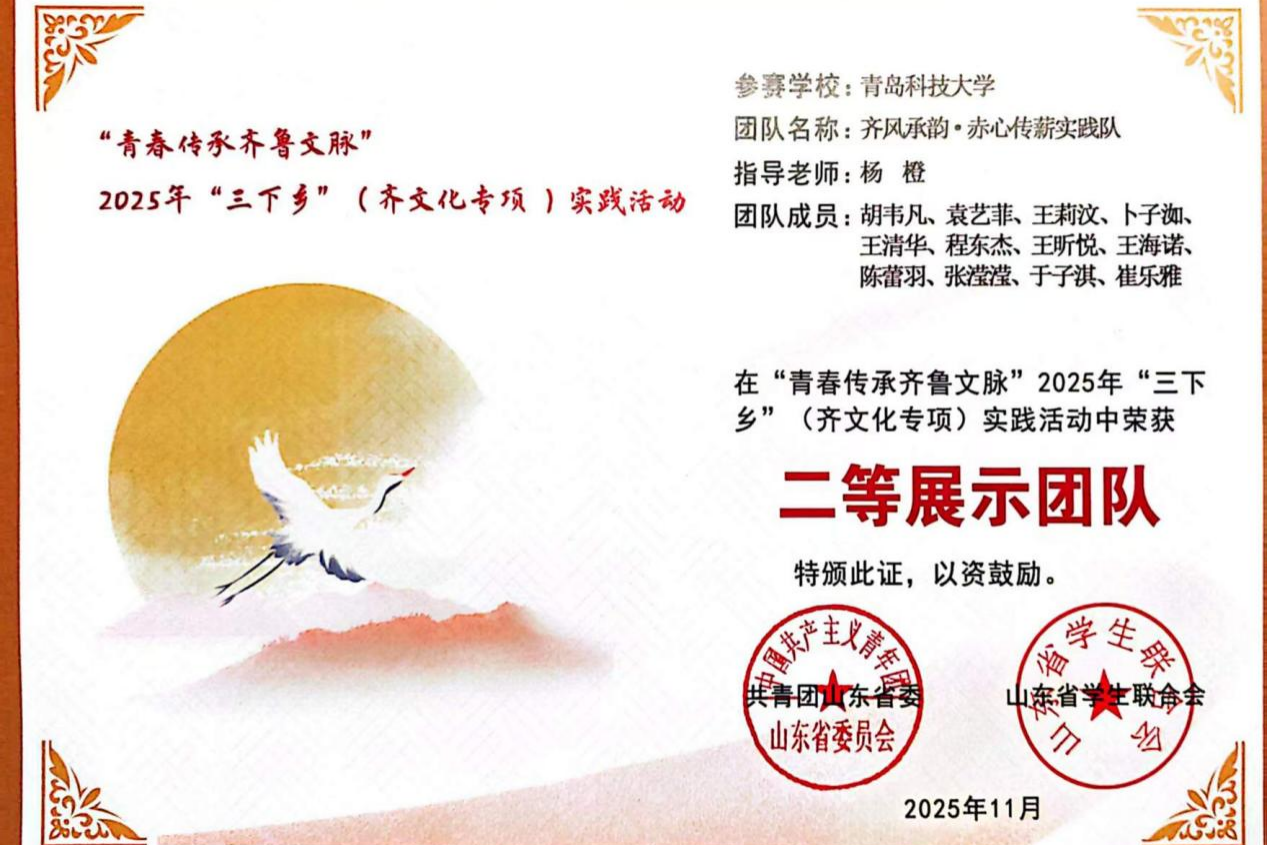 我院“齐风承韵・赤心传薪”实践团队在“青春传承齐鲁文脉”山东省“三下乡”活动中,凭扎实...【详细信息】
