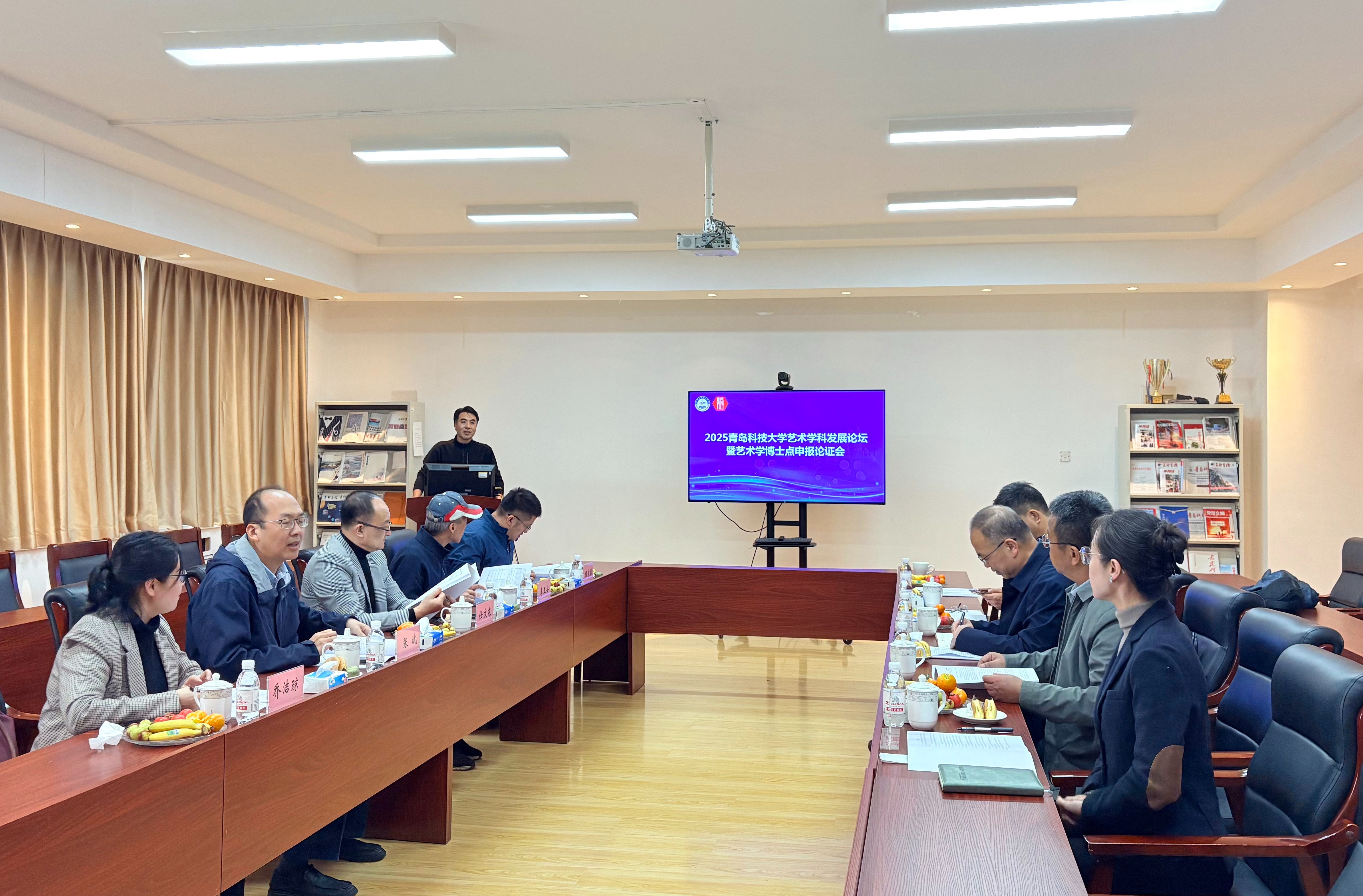 10月25日,2025青岛科技大学艺术学科发展论坛暨艺术学博士点申报论证会在艺术学院顺利召开。校党委常委、副校长丁林教授,大连工业大学原副校长、二级教授、博士生导师任文东教授,清华大学美术学院教授、博士生导师李正安教授,人文社科处处长杨友才,研究生院副院长程家骥,学科发展与规划处副处长张斌,学院领导班子和传媒学院相关负责人出席活动。