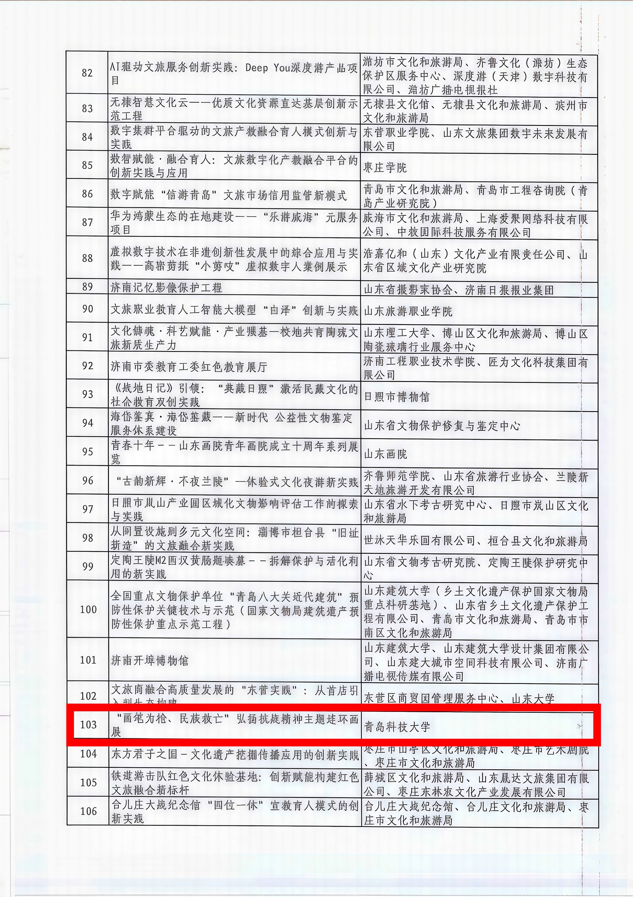 近日,山东省文化和旅游厅发布《关于公布山东省文化创新创造案例的通知》,我校选送的禹青老师的“‘画笔为枪、民族救亡’弘扬抗战精神主题连环画展”项目成功入选该批省级文化创新创造案例,这是我院首次入选省级文化创新创造案例库,更是我省文旅主管部门对我校文化创新实践成效的重要肯定。