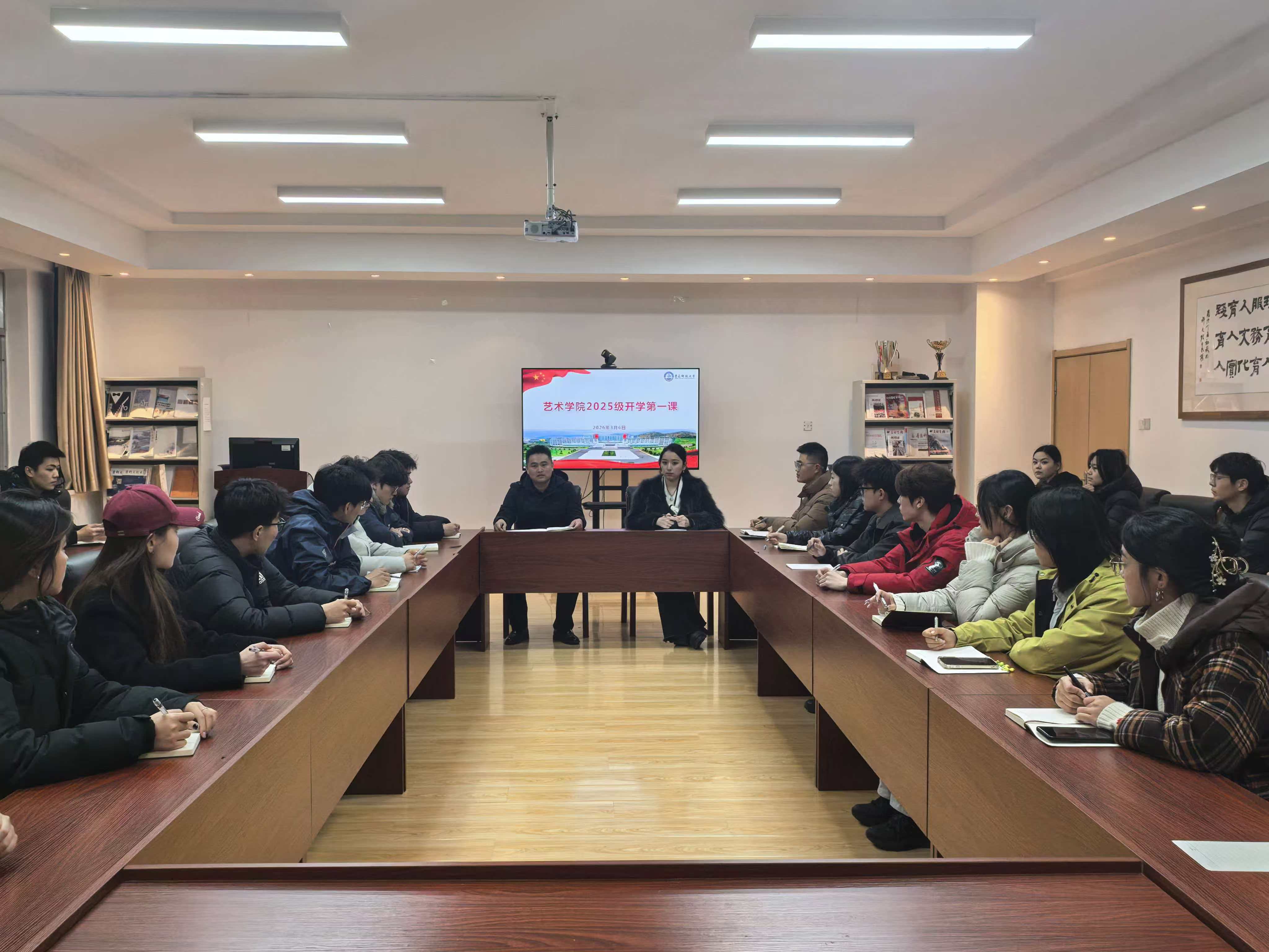 为深入贯彻落实学校2026年春季学期“开学第一课”工作部署,牢牢把握开学返校关键教育期,引导学生以饱满状态投入新学期学习生活。3月12日,艺术学院紧扣理想信念、校园安全、学风建设、心理健康、文明素养五大核心内容,开展2025级本科生“开学第一课”暨年级教育大会。
