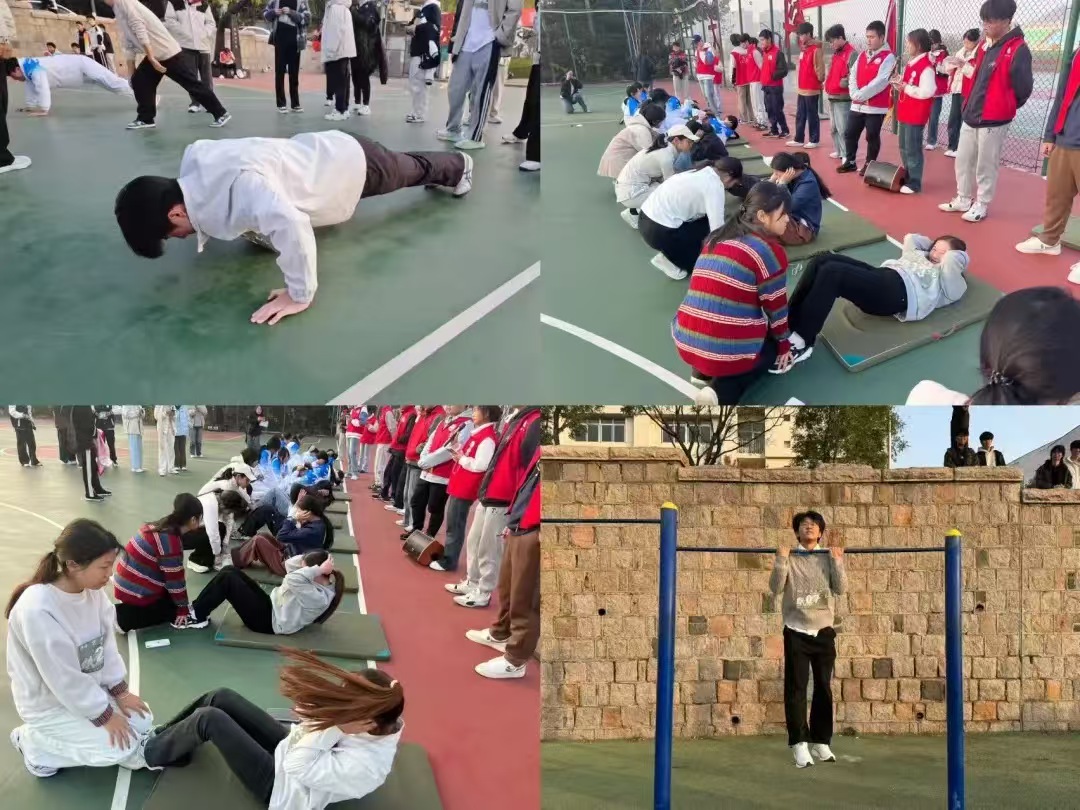 学院参赛学子分赴各赛场,男生组全力冲刺引体向上、俯卧撑项目,女生组专注完成仰卧起坐比拼。选手们斗志昂扬、全力以赴,赛场之上尽显拼搏姿态,充分诠释了团队协作与竞争意识,展现了艺院学子朝气蓬勃的精神风貌。