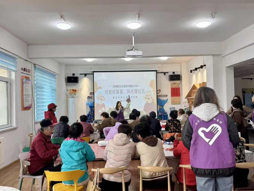 为丰富老年群体精神文化生活,践行艺术服务社会的使命,艺术学院“艺术姐姐”志愿服务队于11月17日前往东韩老年社区,开展手绘喜蛋传温情活动。