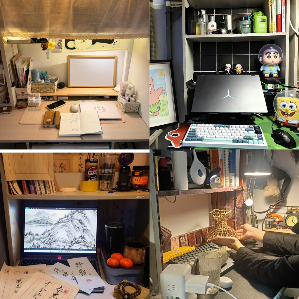 本次公寓文化建设活动以“艺居相融、德业并进”为主题,紧扣艺术学院视觉传达设计、环境设计、产品设计等核心专业优势,重点围绕公寓公共空间美化与宿舍内部布置两大板块展开。在各公寓楼大厅、走廊、活动室等公共区域,学生们化身“空间设计师”,将专业所学转化为实践成果:有的宿舍以“传统美学”为主题,将书法、剪纸、等作品融入桌面,打造出古雅清幽的居住环境;有的宿舍聚焦“现代设计”,用手绘作品、玩偶模型装点空间,彰显时尚活力;还有的宿舍结合专业学习需求,设置了小型手绘区、模型展示角,让宿舍既成为生活港湾,也成为专业实践的“微工作室”。