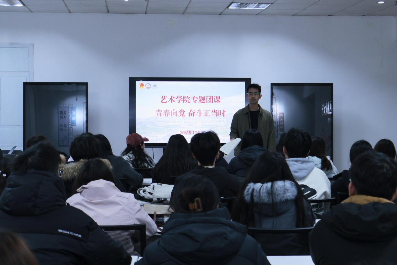 为深入推进新时代党的创新理论武装青年头脑,引导艺术学子筑牢信仰之基、补足精神之钙、把稳思想之舵,艺术学院于10月在一站式学生社区学业发展中心成功举办“深刻领会新时代党的创新理论,争做有理想、敢担当、能吃苦、肯奋斗的新时代好青年”主题团课。学院党委副书记担任主讲人,各年级团干部、青马工程学员及入团积极分子共计40余人参与学习。