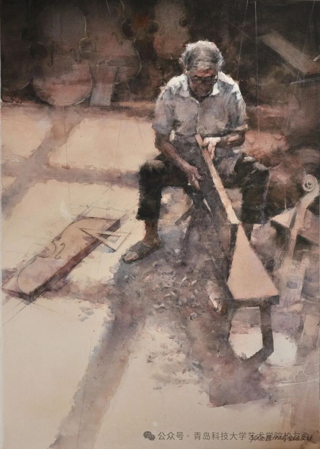 姚冰“第四届小幅水彩画展览”参展作品《匠影浸琴光》 39cm×54.5cm