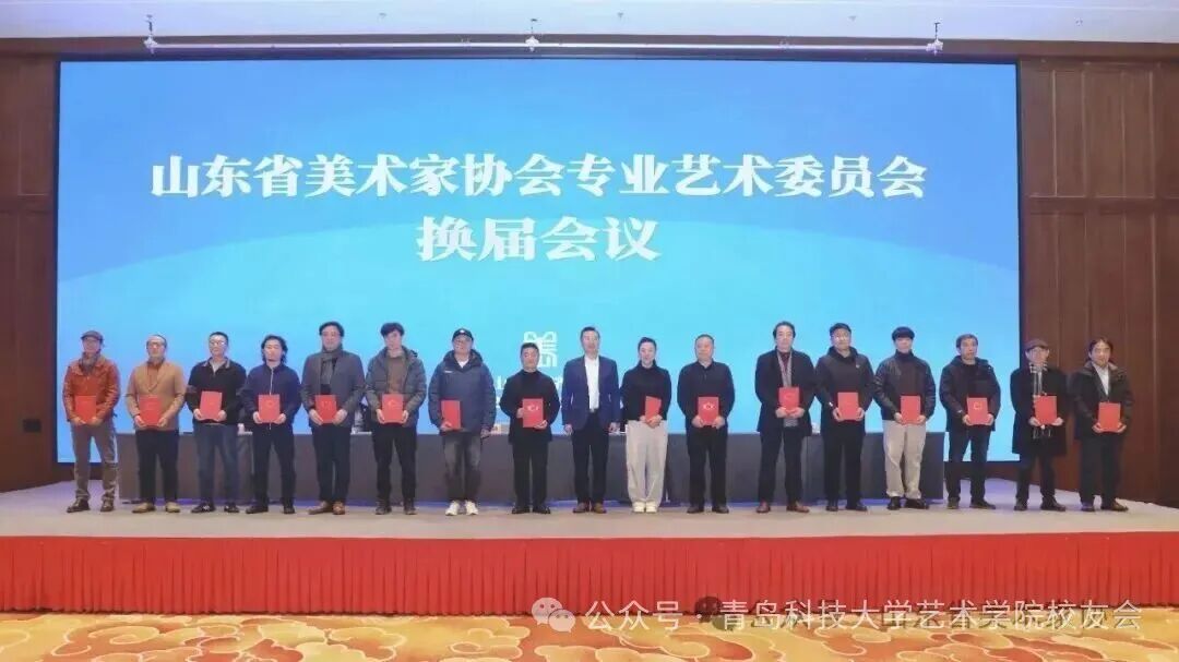2月3日,山东省美术家协会专业艺术委员会换届(成立)会议在济南召开。油画、雕塑、水彩画、综合材料绘画、陶瓷、美术理论、美术馆与策展7个专业艺术委员会进行换届,并成立中国画、版画、漆画、连环画、工艺美术、实验艺术、设计艺术、数字艺术、漫画、高校美术教育10个专业艺术委员会。我校艺术学院1986届校友李玉旺任职中国画艺术委会主任、1991届校友顾群业任职数字艺术委员会主任、1986届校友董海全、1991届校友丁毅任职水彩画艺术委会副主任。